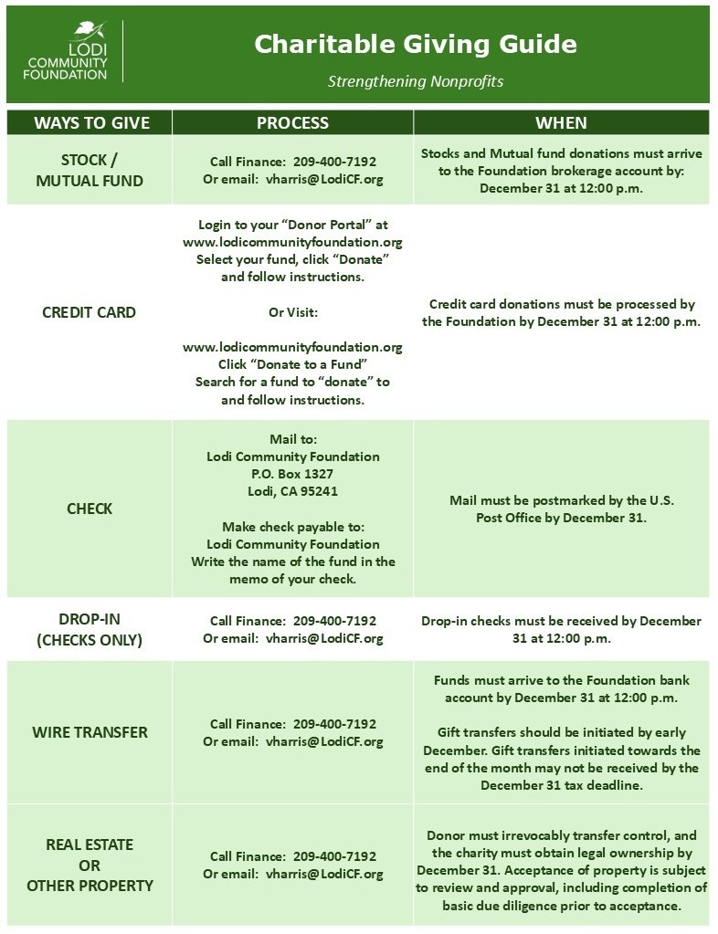 Opening a fund at Lodi Community Foundation is a meaningful way to support the causes you care about while also receiving valuable tax benefits.